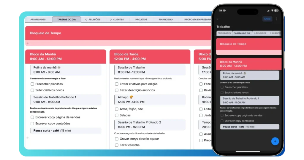 Planeje seu dia com clareza e foco total em poucos minutos, pra nunca mais sentir que o tempo escapou.